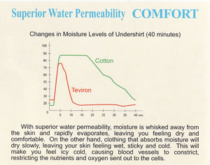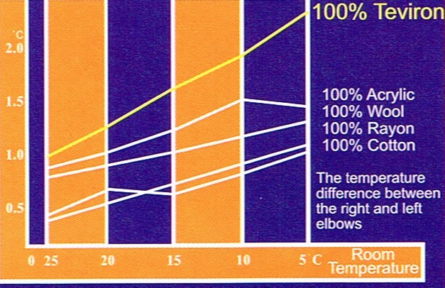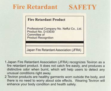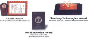 Teviron is a negative ion fibre transformed from polyvinyl chloride. Its ingenious invention and its unique features won the Okochi Award, the highest honour in the Japanese fibre industry, the Onshi Invention Award given by the late Emperor Hirohito of Japan and the Chemistry Technological Award given by the prestigious Chemistry Association of Japan. |